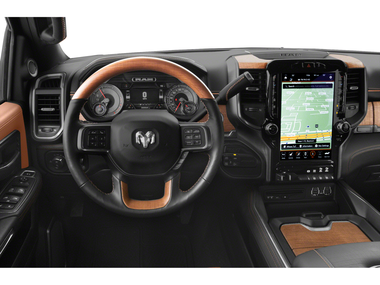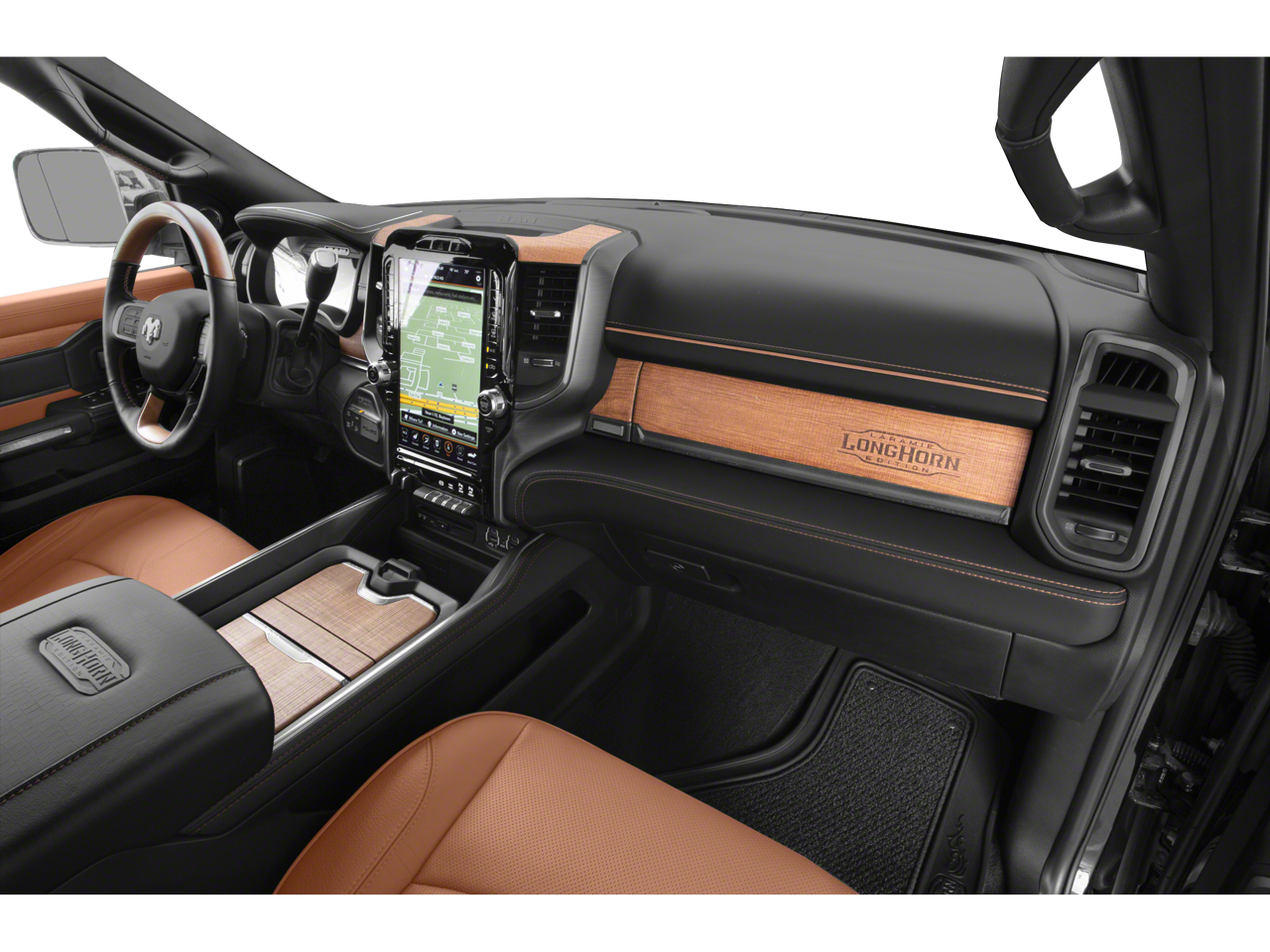 This Laramie Longhorn model is meticulously equipped to provide you with unparalleled comfort and convenience. Indulge in the premium 17 Speaker harman kardon Sound System, the intuitive 12 Touchscreen Display with Navigation, and the seamless integration of Apple CarPlay and Android Auto. The Ramcharger Wireless Charging Pad ensures your devices stay powered, while the Blind Spot & Cross Path Detection system enhances your safety on the road.