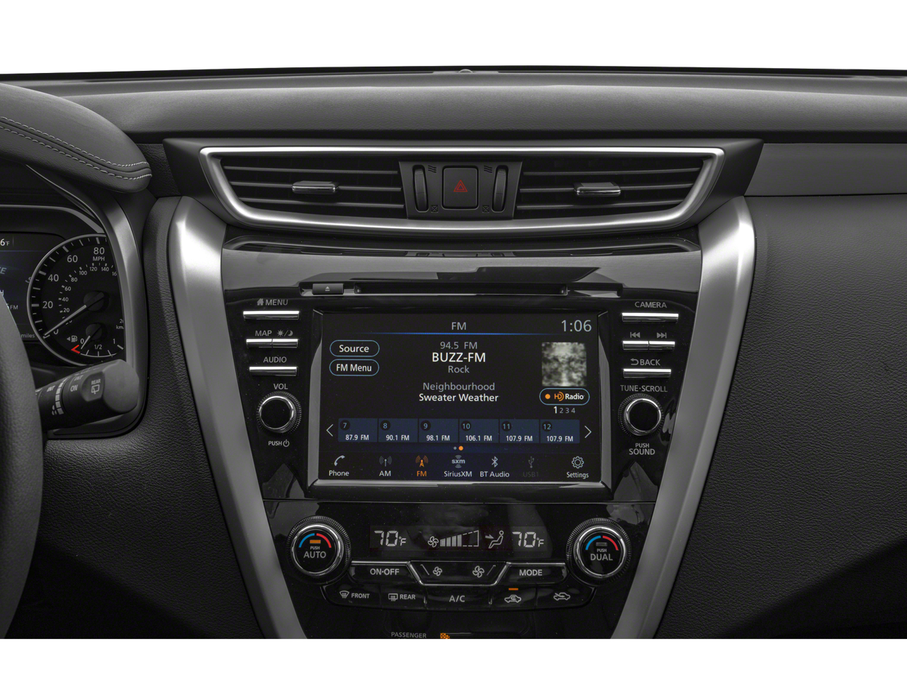 - Radio: AM/FM/CD/MP3/WMA Audio System -inc: Bose premium audio system w/11 speakers plus dual driver subwoofer, NissanConnect w/navigation featuring Apple CarPlay and Android Auto, Nissan door to door navigation w/3D building graphics and satellite imagery, connected navigation features including online POI search, door-to-door and online premium traffic information, SiriusXM Travel Link (weather, fuel prices, movie listings, stock info, sports and parking), SiriusXM Traffic, auxiliary audio input jack, SiriusXM satellite radio, A-IVI 8" display, 2 front illuminated USB connection ports (1 type-A, 1 type-C) for iPod interface and other compatible devices, Bluetooth hands-free phone system, streaming audio via Bluetooth, hands-free text-messaging assistant, Siri Eyes Free and 2 rear illuminated USB charge ports (1 type-A, 1 type-C)