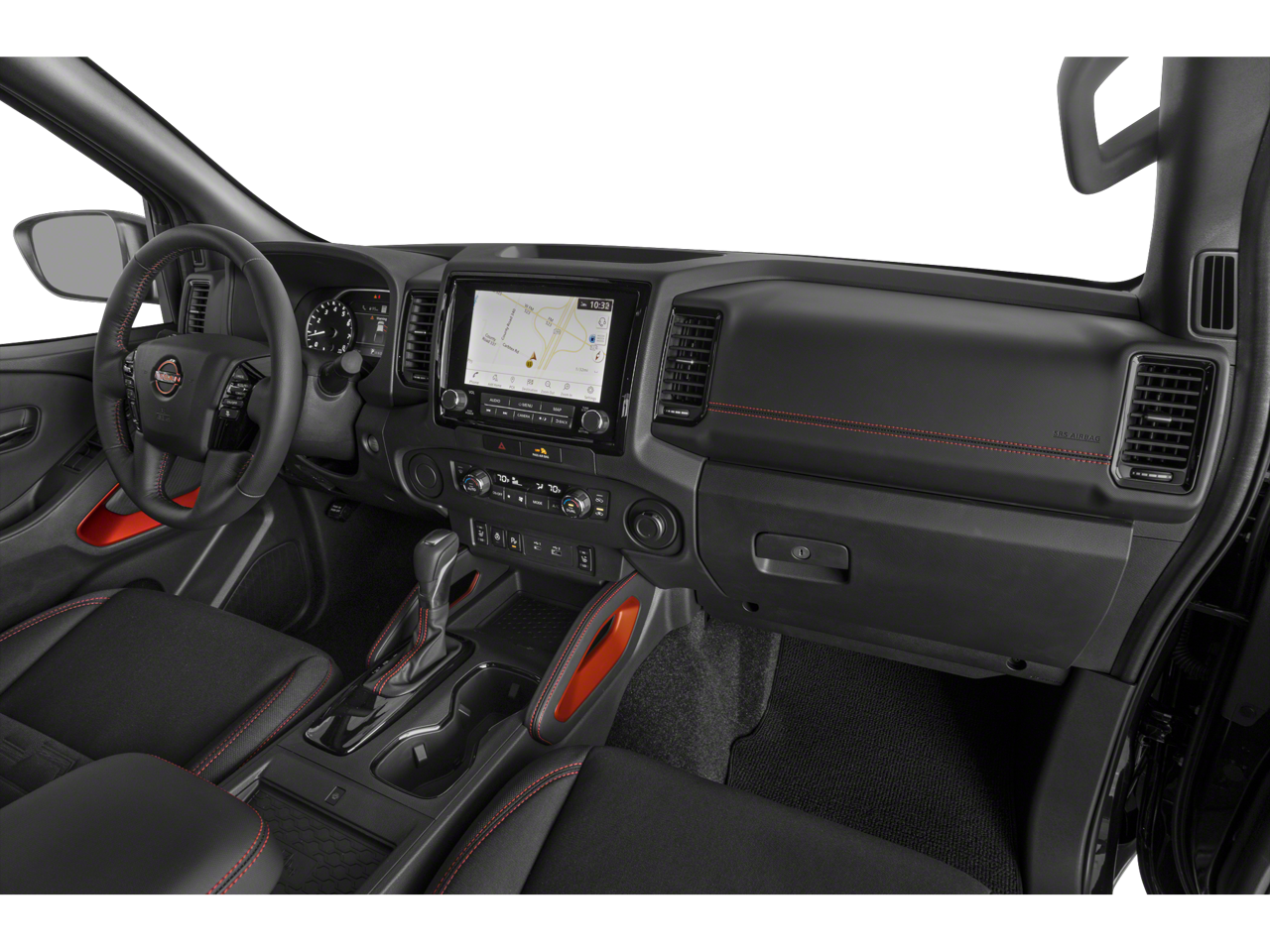 Inside, you'll find a well-equipped cabin with premium cloth seating, a navigation system, and a suite of advanced safety technologies. The Frontier PRO-4X is built to handle the demands of your active lifestyle, whether you're hauling gear, towing a trailer, or navigating challenging terrain.