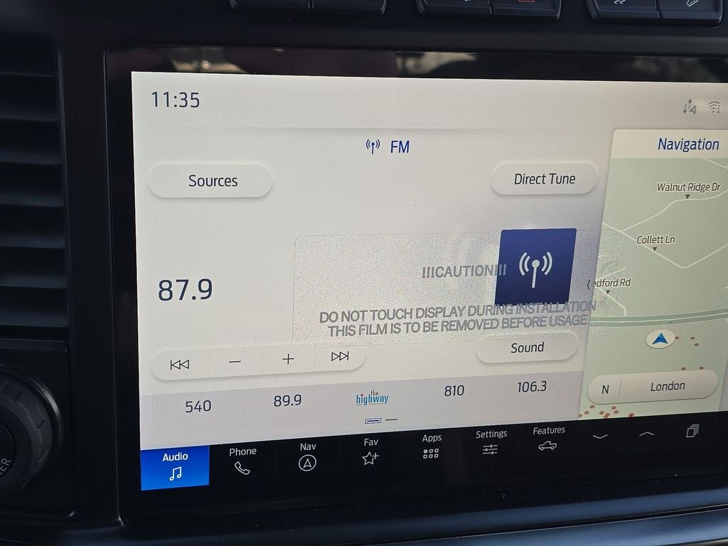 - SYNC 4 w/Enhanced Voice Recognition -inc: 12" LCD capacitive touchscreen w/swipe capability, information on demand panel, wireless phone connection, cloud connected, AppLink w/app catalog, 911 Assist, Apple CarPlay and Android Auto compatibility, digital owner's manual, conversational voice command recognition and connected navigation w/complimentary 1-year trial for eligible vehicles that begins on the new vehicle warranty start date, Customers must unlock the navigation service trial by activating the eligible vehicle w/a FordPass member account, If not subscribed by the end of the complimentary period, the connected navigation service will terminate, and the system will revert to embedded offline navigation, Navigation services require SYNC4 and Ford Pass Connect (optional on select vehicles), complimentary connect service and the FordPass app (see FordPass terms for details), Connected service and features depend on compatible AT&T network availability, Evolving technology/cellular networks/vehicle capability may limit functionality and prevent operation of connected features, FordPass app, compatible w/select smartphone platforms, is available via a download, Message and data rates may apply