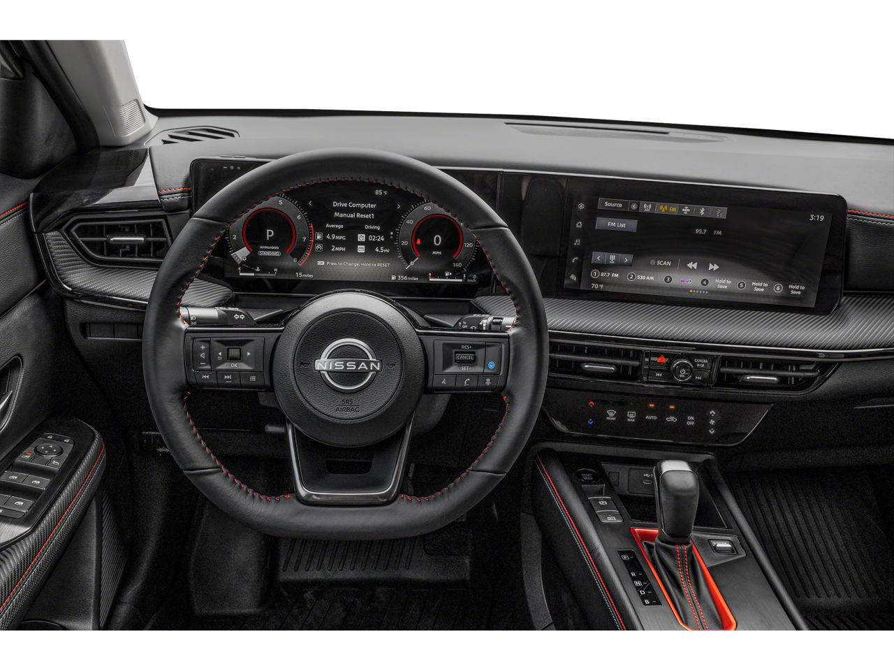 - Radio: AM/FM Audio System -inc: 12.3 color touchscreen display w/6 speakers, Bluetooth hands-free phone system, streaming audio via Bluetooth, audio and Bluetooth steering wheel switches, USB C (data and charge) (front), rear USB type C port (2), NissanConnect featuring wireless Apple CarPlay, wireless Android Auto, Siri eyes free, SiriusXM satellite radio w/advanced auto features and hands-free text messaging assistant